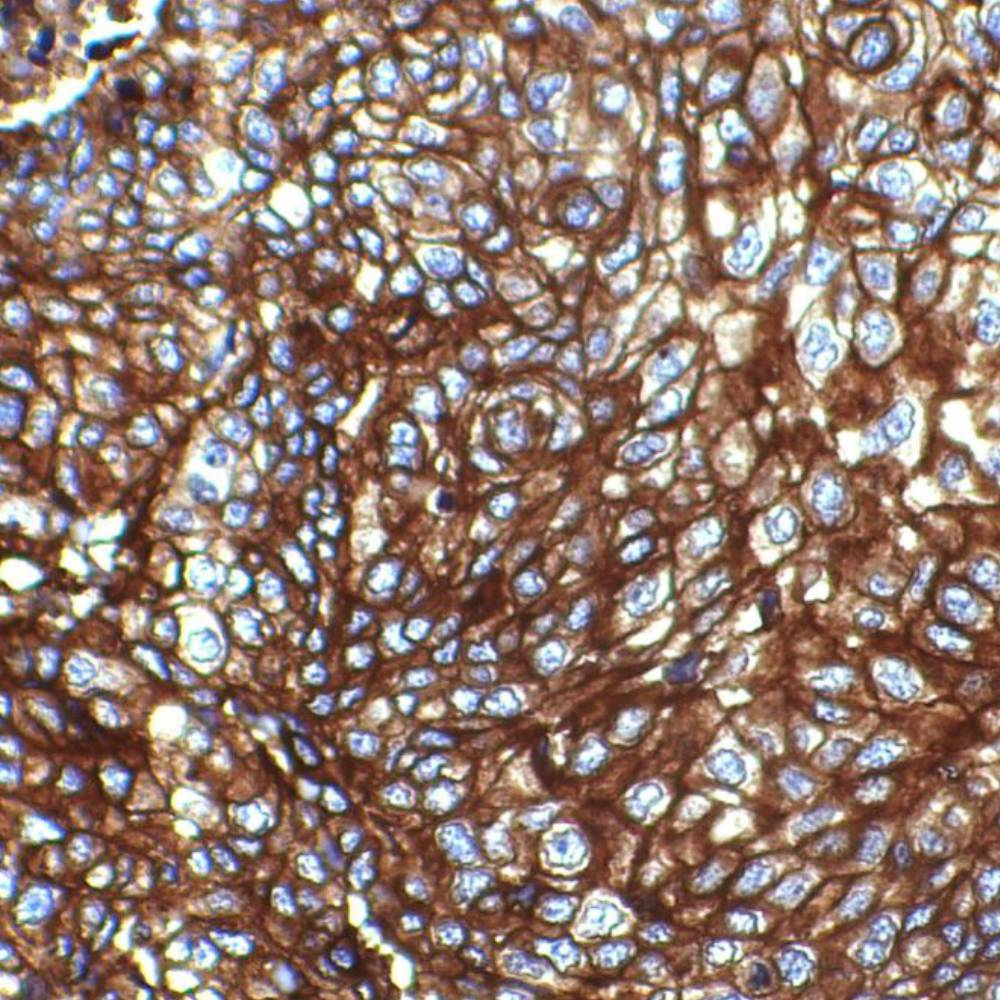 Programmed cell death ligand 1 (PD-L1) also known as cluster of differentiation 274 (CD274) or B7 homolog 1 (B7-H1) is a type transmembrane protein involved in the regulation of cellular and humoral immune responses. The interaction of PD-L1 with its receptor PD-1 provides both stimulatory and inhibitory signals in regulating T cell activation and tolerance during pregnancy tissue allografts, autoimmune disease and malignant transformation. PD-L1 is expressed on resting T cells, B cells,DCs, and macrophages and is further up-regulated upon activation. PD-L1 is also expressed on parenchymal cells, including vascular endothelial cells and pancreatic islet cells. The expression of PD-L1 has been discovered in a variety of epithelial cancers such as non-small cell lung carcinoma (NSCLC), pancreatic cancer, esophageal cancer, squamous cell carcinomas of the head and neck, and renal cell carcinoma (RCC).