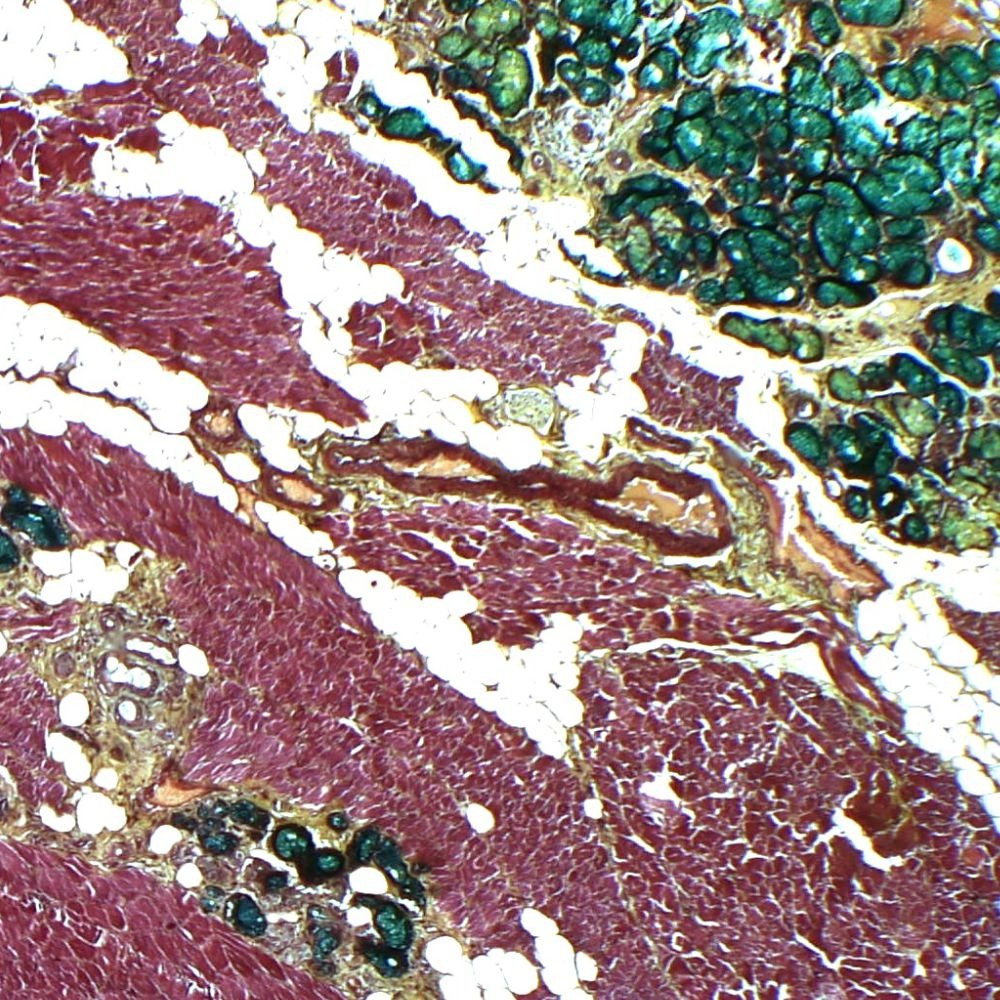 Movat’s Pentachrome Stain Kit is intended for use in simultaneous histological visualization of five major tissue components in contrasting colours. The term ‘Pentachrome stain’ is a general name for the application of five dyes, which facilitates the selective demonstration of muscle, cell nuclei, mucins and ground substance, elastin fibers, collagen fibers, and Fibrin. This product is not intended for diagnostic or therapeutic use the results are to be interpreted by qualified personnel in conjunction with other clinical and laboratory findings.